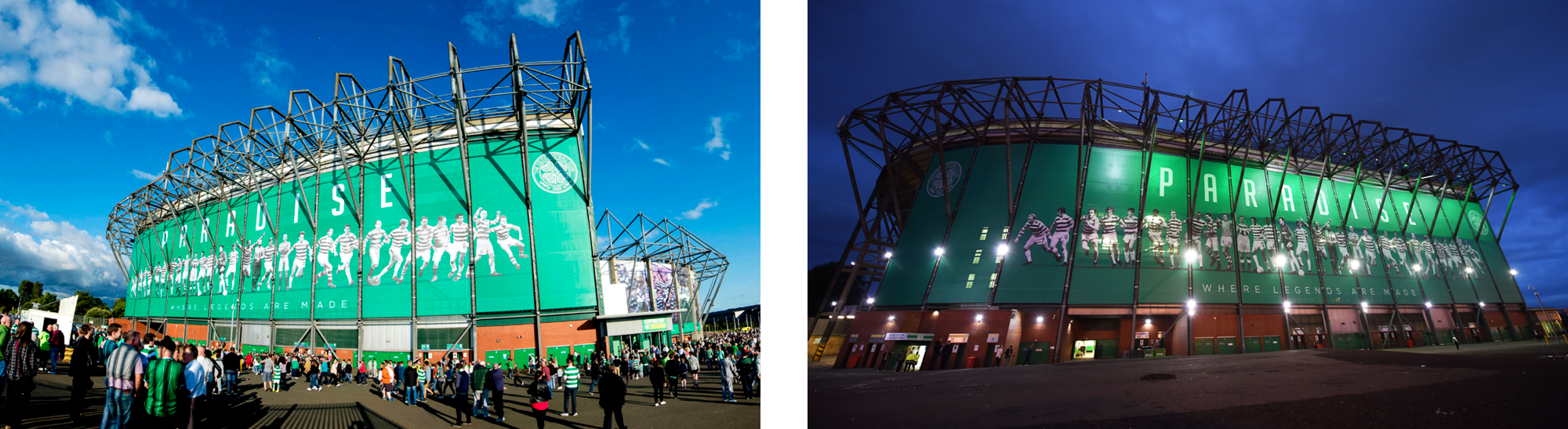 Our task was to create a piece of design that would reinforce the feeling of pride at Celtic Park and celebrate the on-going regeneration of the East End.