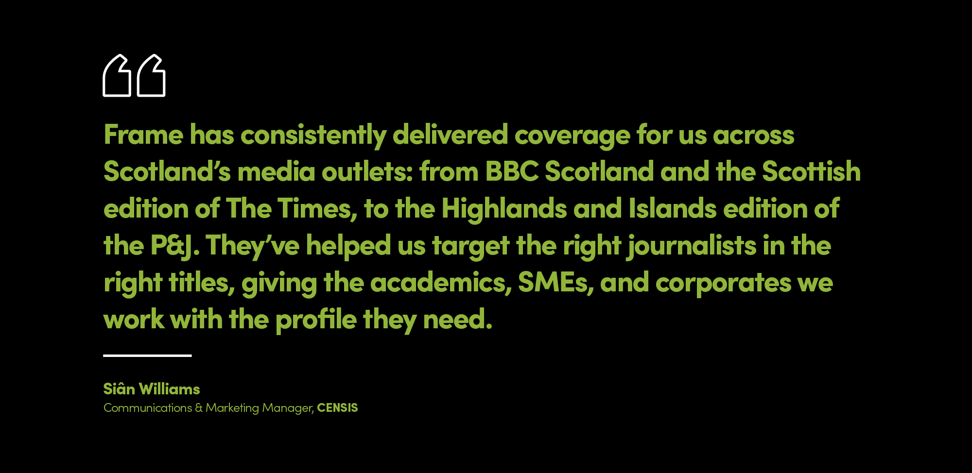Frame has been working with CENSIS, the innovation delivery organisation for digitalisation and enabling technologies, since October 2018. Due to the technical nature of the centre’s work, CENSIS required a PR partner who could help to write and place stories which would cut through to mainstream business media on a more regular basis.