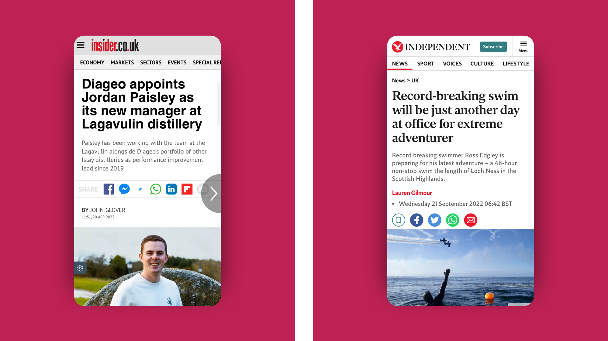 Communicating Diageo’s commitment to sustainability is also a key part of our work with the corporate team. We regularly produce content which helps showcase the work the company is doing. For example, last year, Diageo partnered with RSPB Scotland to help save a crucial area of peatland in one of Scotland’s national parks. We spent a day on site creating video, audio and photography and created a strong package of media and social media materials to tell the story – all resulting in strong earned coverage and engaging social media content.