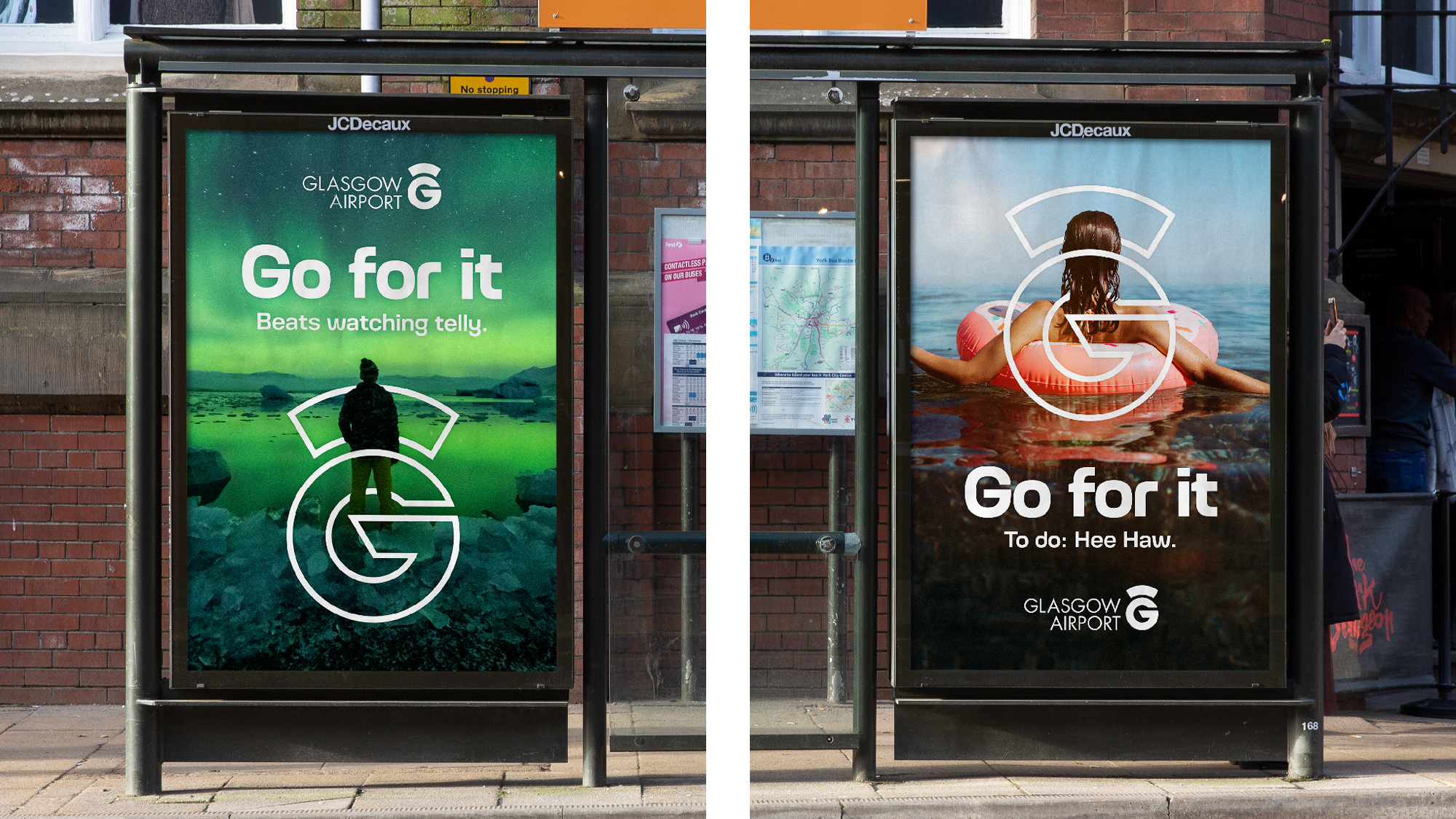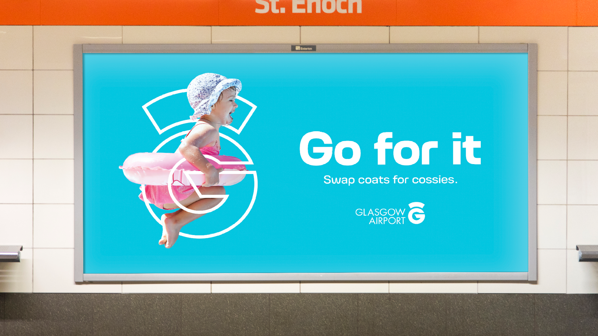 We took the airport’s iconic and much loved ‘G’ mark and turned it into a portal - one that showcased all the amazing places the airport could take you to. We coupled this with a new strapline “Go for it”, a very glaswegian turn of phrase, which pushed holidaymakers to take the plunge, businesses to take off and staff to go all out in delivering the best possible airport experience.