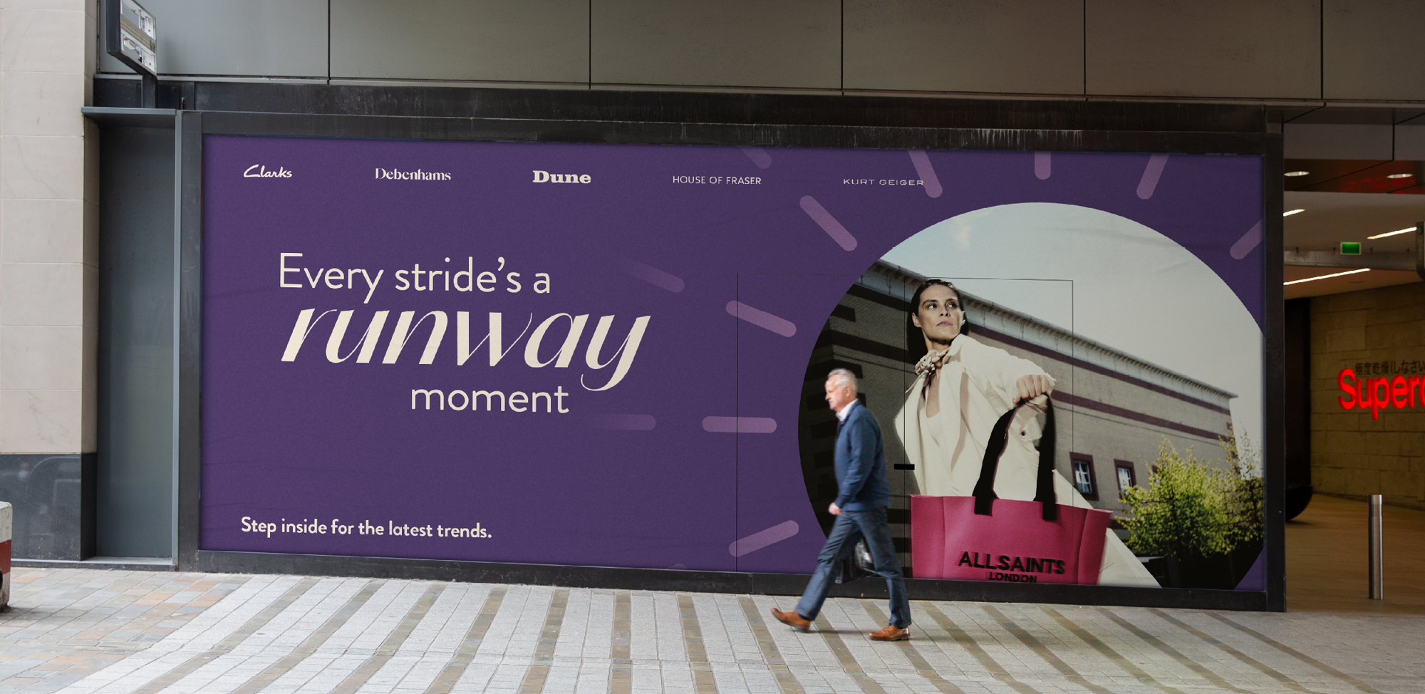 We crafted a restrained, elegant visual identity with a grown-up, feminine touch. A look we knew would appeal to the largely local audience, while also speaking to the quality and refinement of the shopping experience. Tastefully muted colours, editorial fashion-inspired typography, and graphic textures inspired by the centre’s architecture worked together to create a look fit for Essex royalty.