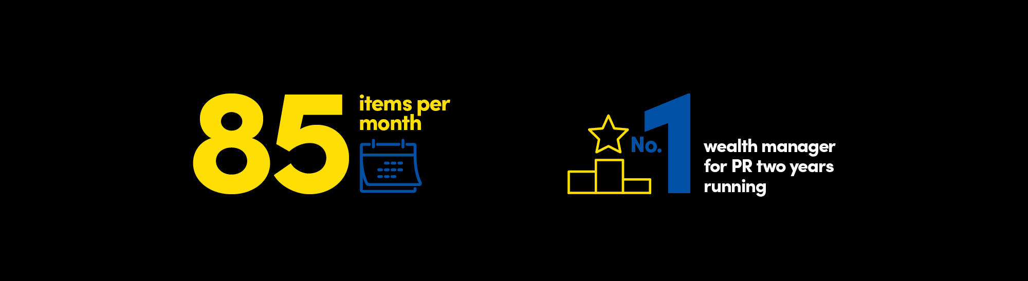 Focusing on thought leadership through commentary on economic and company news, as well as in-depth analysis of personal finance and investing issues, we have generated more than 4,000 pieces of coverage in the firm’s target media, at an average of around 85 items per month, with a combined reach of more than 1.1 billion.