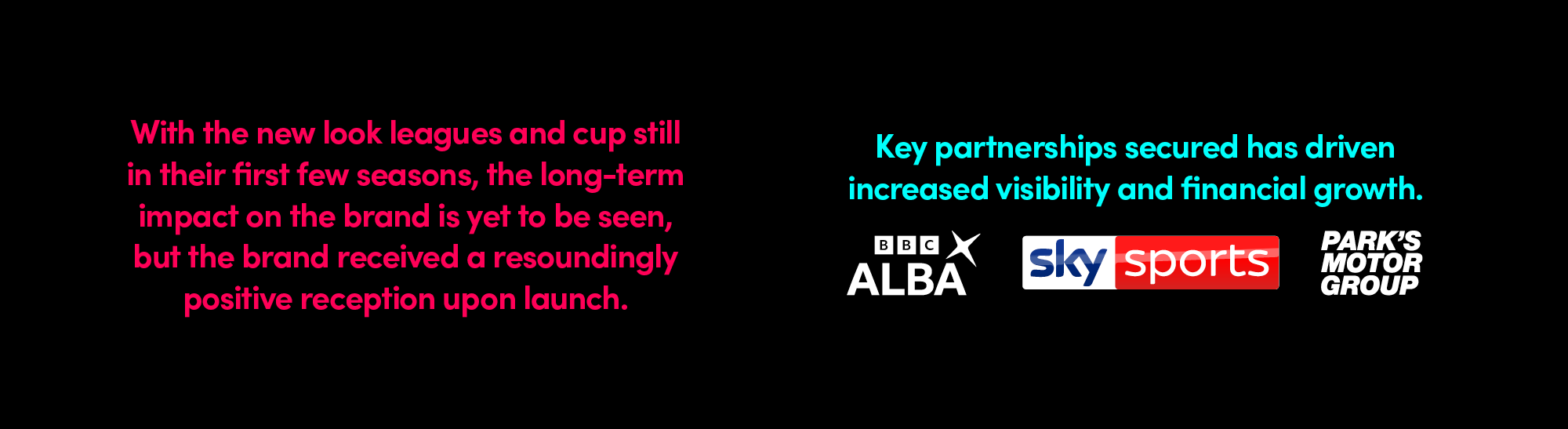 A digital-first colour palette was employed to reflect a modern league and offer a contemporary twist on the traditional Scottish colours found in our national flags.